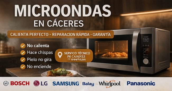 Servicio técnico de microondas en Cáceres. Reparamos todo tipo de averías para que tu electrodoméstico funcione como nuevo.